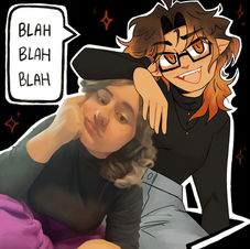 A digital drawing of a still life with traditional cartoon drawings edited on top.